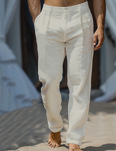 100% Lin Homme Pantalons en Lin Pantalons Pantalon d'été Pantalon carotte fuselé Cordon de serrage Avec Poches Taille Élastique Uni Confortable Respirant Quotidien Vacances Sortir Classique