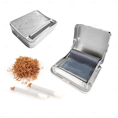 Lot de 2 boîtes à rouler automatiques semi-automatiques réglables en métal, étui compact et personnalisé pour rouler le tabac à feuilles standard.