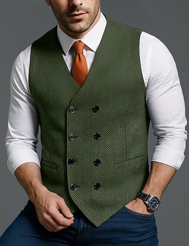 Homme Gilet Formel Vacances Quotidien Fête de mariage Mode Occasionnel Printemps Automne Avec Poches Boutons Polyester Mélange de Laine Confortable Uni Chevrons Double Boutonnage Col en V Coupe Slim