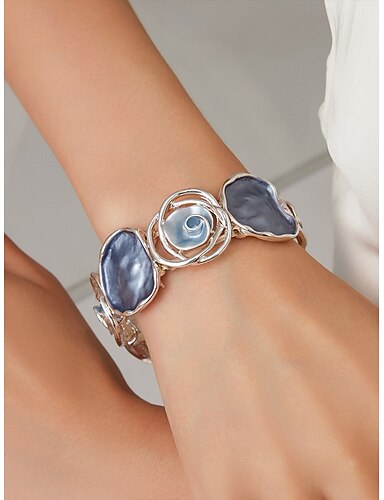 bracelet argenté pour femme – design artistique avec des accents de coquillages en résine bleue pour un look côtier élégant