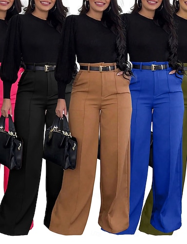 Femmes Pantalons Dress Pants works Pantalon d'été Vacances Mode Décontracté Quotidien Longueur complète Taille Moyenne Uni Fermeture éclair Avec Poches in in france they say Pontalon wide leg Confort