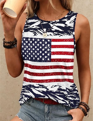 Robe mini patriote pour femmes du jour de l'indépendance robe décontractée robe à bretelles vacances décontractée vacances quotidiennes ajustement régulier drapeau sans manches col ras du cou rouge