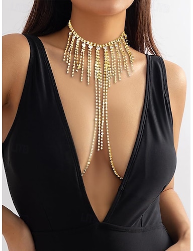 Collier Chaîne de Corps Tour de cou en dentelle bracelet Métallique Etincelant Sexy Dentelle Alliage Pour Disque Cosplay Carnaval Femme Bijoux de fantaisie Bijoux fantaisie