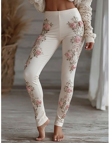 Femmes Leggings Leggings confortables Vacances ancien Style Ethnique Longueur complète Taille haute Fleuri Impression Confortable Élastique Occasionnel Quotidien Vacances Bleu Blanche Rouge Violet
