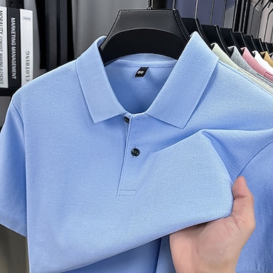 Homme Polo Chemise 100% coton délavée à l'acide Occasionnel Vacances Revers Manche Courte Mode Moderne Uni Boutons Pur Été Printemps Coupe régulière Bleu Clair Noir Blanche Jaune Rose Claire Rouge
