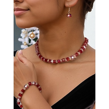 Ensemble de bijoux pour femmes en perles de cristal rouge pour fête de Noël, collier élégant, bracelet &ensemble de boucles d'oreilles pendantes pour les fêtes de fin d'année et les événements