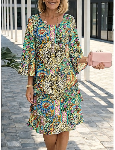 Femmes Robe Longueur Genou Robe fourreau Occasionnel Coupe régulière Fleuri Graphique Paisley Manche 3/4 Col ras du cou Bleu Rose Claire Vert Été Printemps