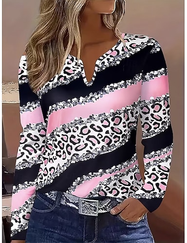 Femmes T-shirt Imprimé Graphique Géométrique Abstrait ancien Élégant Moderne manche longue Encolure en V Hauts Réguliers Quotidien Week-end Bleu Rose Claire Vin Rouge Orange Printemps Automne