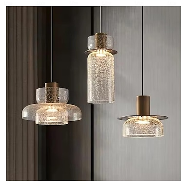 Suspension créative en verre craquelé, verre ambré transparent, idéale pour salle à manger, chambre, bar ou boutique. Équipée d'un câble LED réglable et d'un éclairage moderne.