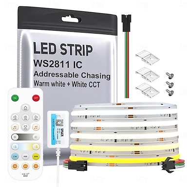 Bande LED COB adressable 2700K-6500K, lumière blanche changeante, double module CCT, circuit intégré intelligent, 5 m (16,4 pi), ultra-lumineuse, dimmable, compatible Alexa, pour éclairage sous les