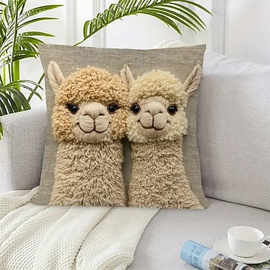Deux housses de coussin imprimées sur une seule face avec un motif d'alpagas, 45 x 45 cm, pour coussins décoratifs pour salon, chambre, canapé et autres meubles.