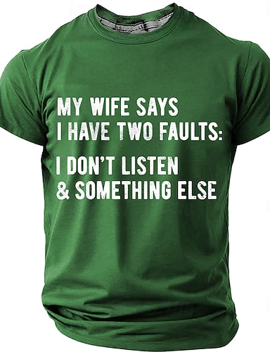 T-shirt à manches courtes graphique drôle pour hommes Ma femme dit que je n'ai que 2 défauts (je n'écoute pas et quelque chose d'autre)