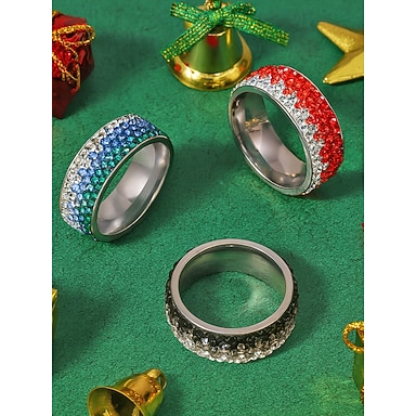 Bague de Noël en acier inoxydable pour homme – élégante bande de strass rouge, bleu et noir – accessoire de vacances idéal pour homme – cadeau de Noël festif