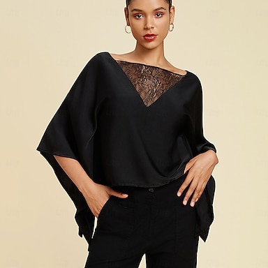 pantalon large en satin à ourlet arrondi et jambes croisées, idéal pour une escapade estivale