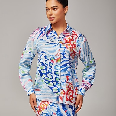 Blouse d'été fluide en mousseline de soie à motif floral, style Santorin