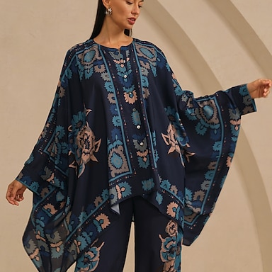 pantalon bohème à motifs cachemire en soie à jambes larges