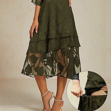 Femmes Élégant Occasionnel Midi Taille Moyenne Jupes Fleuri Dentelle A Volants Ourlet irrégulier Micro-Élastique Date Décontracté Quotidien Olive Printemps, Automne, Hiver, Été Polyester
