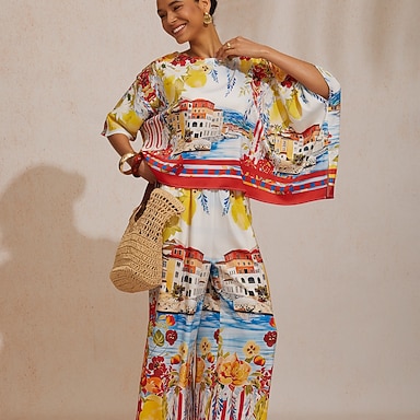 Pantalon d'été Santorini en soie, taille élastique et jambes larges