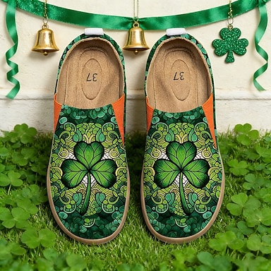 Chaussures plates décontractées à enfiler pour la Saint-Patrick – imprimé trèfle vert, semelle confortable, élégantes et amusantes pour les fêtes, les festivals et le quotidien