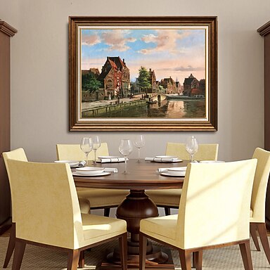 Peintures à l'huile faites à la main toile art mural décoration célèbre peinture de rue d'anciens bâtiments européens pour la décoration intérieure roulé sans cadre peinture non étirée