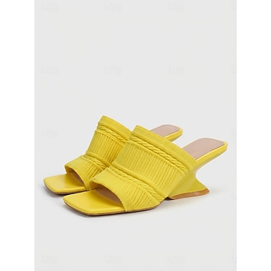 Sandales à enfiler en maille jaune vif pour femme - mules modernes à bout carré et talon sculptural unique, idéales pour les escapades de luxe à l'hôtel et les fêtes au bord de la piscine &de belles