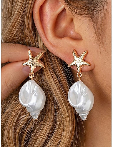 Boucles d'oreilles en alliage pour femme, ornées de fausses perles, d'étoiles de mer et de coquillages, style bohème, parfaites pour les vacances d'été et le quotidien.