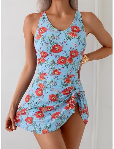Femmes Maillots de Bain Une Pièce Monokini Robe de Bain Burkini Maillot de bain Contrôle du ventre Taille haute Mince Dos nu Vacances Tenues de plage Fleuri Graphique Col en V Sans manches Maillots