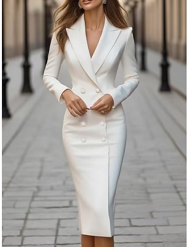 Femmes Robe Midi Robes de blazer Robe fourreau Formel cocktail Bureau robe demoiselle d honneur Anniversaire Coupe régulière Uni manche longue Col en V Bleu Noir Blanche Rouge Printemps Automne Hiver