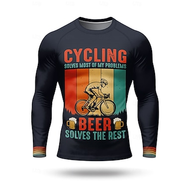 Homme Maillot de descente Arc-en-ciel Lettres & Chiffres manche longue Cyclisme Maillot Top avec 3 poches arrière Séchage Rapide Doux Confortable Évacuation de l'Humidité Des sports Bleu Marine