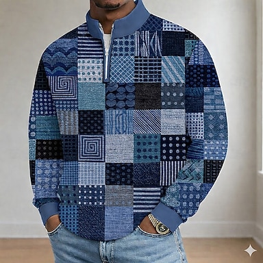 Homme Bloc de Couleur Géométrique Polo manche longue Col montant Occasionnel Vacances Athleisure Décontracté Quotidien Patchwork Impression 3D Printemps Automne Bleu 1 Bleu 3# Bleu 2#