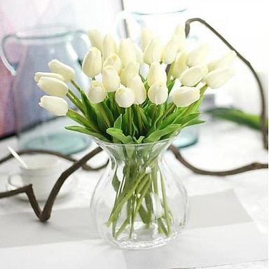 Bouquet de 22 tulipes artificielles réalistes - tulipes roses et blanches à tiges vertes, fleurs en résine/plastique pour la décoration de mariage, maison et bureau - centre de table réaliste et