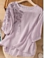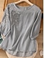 Femmes Chemisier Chemise en faux lin Broderie Boutons Fleuri Élégant Occasionnel Manche 3/4 Col ras du cou Hauts Réguliers Quotidien Jaune Violet Vert Gris Été Printemps Automne