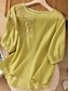 Femmes Chemises en coton et lin Chemisier Boutons Couleur Unie Quotidien Élégant Basique Manche 3/4 Col en V Hauts Réguliers Quotidien Bleu Jaune Vert Gris foncé Gris Été Printemps Automne