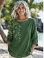 T-shirt Femme Graphique Floral Élégant Manches 3/4 Col Ras Du Cou Tops Réguliers Quotidiens Sortie Volants Boutons Bleu Violet Vert Kaki Été Printemps