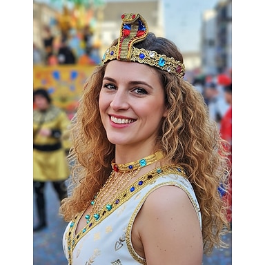 Ensemble de costume de reine égyptienne en polyester pour femmes Mardi Gras serre-tête collier et bracelet avec des pierres précieuses colorées idéal pour le carnaval et les bals masqués