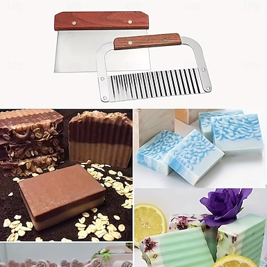 Moules à savon en silicone pour kit de fabrication de savon, fournitures de fabrication de savon avec coupe-savon, boîte en bois, grattoir ondulé et droit