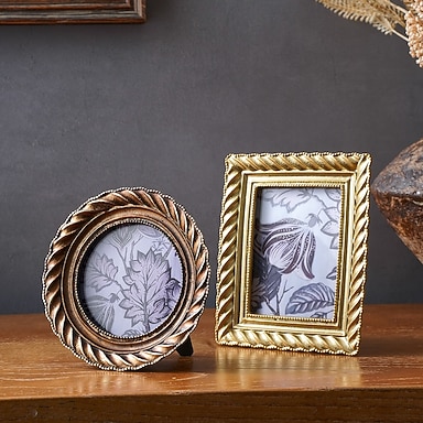 Cadre photo rétro à motif spirale, en résine, finition dorée antique sculptée, idéal pour la décoration de bureau, l'affichage de photos et comme accessoire de photographie.