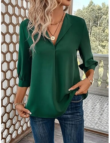 Femmes Chemise en satin Chemise Décontractée Chemisier Couleur Unie Élégant Basique manche longue Col en V Hauts Réguliers Quotidien Extérieur Travail Noir Vin Vert Été Printemps Automne