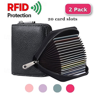 Lot de 2 porte-cartes de crédit avec protection RFID pour femmes &Portefeuille homme en cuir véritable avec fermeture éclair, 20 emplacements pour cartes, étui de voyage grande capacité de type