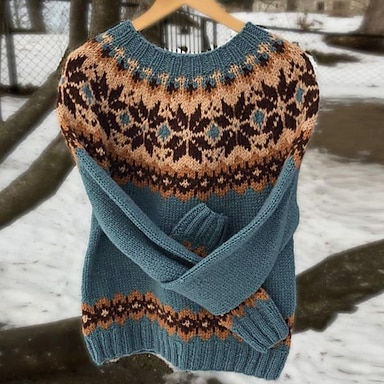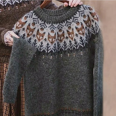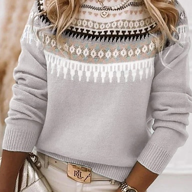 Femmes Pull de Noël Pull Fair Isle Pull Pull Fair Isle Occasionnel Doux Fleuri Côtelé Col ras du cou Tricoté manche longue Hauts Réguliers Tricoter Quotidien Fête Sortir Rose Claire Automne