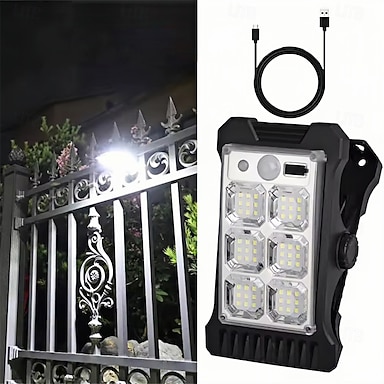 Lampe solaire à pince avec chargeur USB, lampe d'extérieur portable et étanche avec capteur de corps, lampe de jardin, de patio, de camping, applique murale, 1 pièce