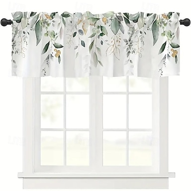 1 pièce de rideau court de cuisine à feuilles vertes de 54 pouces * 18 pouces - Rideau à ouverture de poteau 100% polyester lavé en machine avec œillets, design de feuille translucide adapté au salon,