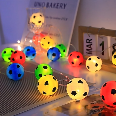 1,5 m 10 LED &Guirlande lumineuse de 3 m avec 20 LED colorées en forme de ballon de football – éclairage fixe, lumière chaude, fonctionne avec des piles AA, idéale pour la chambre, le salon, les fêtes