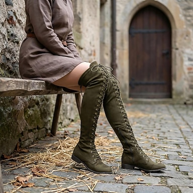 Médiéval Renaissance Cuisse haute Chaussures Bottes Elfe Viking À lacets Déguisement Femmes Halloween Carnaval Performance LARP Foire de la Renaissance Adulte Chaussures