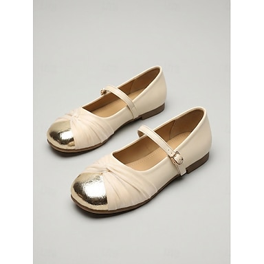 Ballerines beiges chics pour femme - chaussures confortables à bout rond et bout doré métallisé, parfaites pour un style français, les trajets quotidiens et une tenue élégante au bureau.