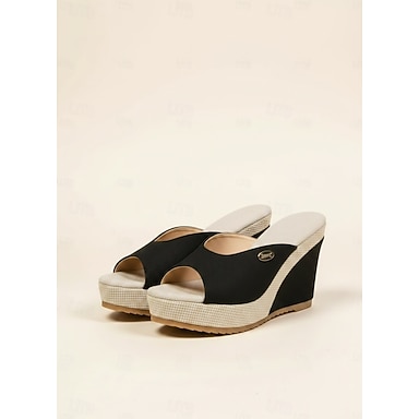 Sandales compensées noires à bout ouvert pour femme – Chaussures espadrilles d'été décontractées à plateforme pour les vacances et la plage