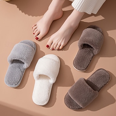 Pantoufles en coton peluche pour femmes, automne-hiver, bout ouvert, chaussons d'intérieur doux et moelleux, style européen, chaussures confortables