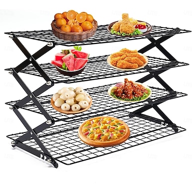 Grille de refroidissement pliable améliorée à 3/4 niveaux avec conception réglable à 3 réglages, grille de refroidissement empilable pour la cuisson au four, les biscuits, les gâteaux, la torréfaction