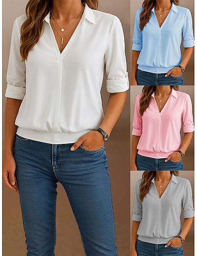 Femmes Chemise Chemisier Patchwork Uni Élégant Classique Moderne manche longue Col de chemise Hauts Réguliers Quotidien Bureau Fête Blanche Rose Claire Grise Bleu clair Été Printemps Automne