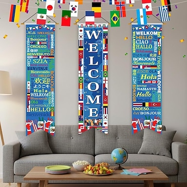 Bannière de bienvenue pour la Coupe du Monde de football 2026, décoration pour un événement mondial de football.